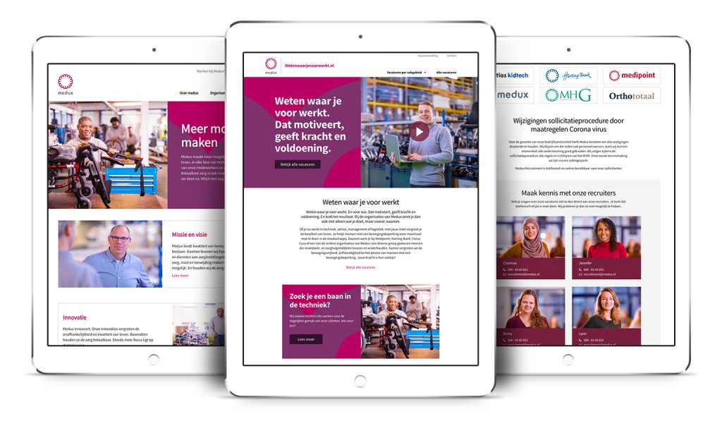 Voor Medux hebben we zowel de corporate website als de ‘Werken bij’-website gerestyled en gemoderniseerd, inclusief nieuwe content, waaronder interviews met de eigen mensen, fotografie en video. Volledig in lijn met de nieuwe positionering en merkidentiteit.